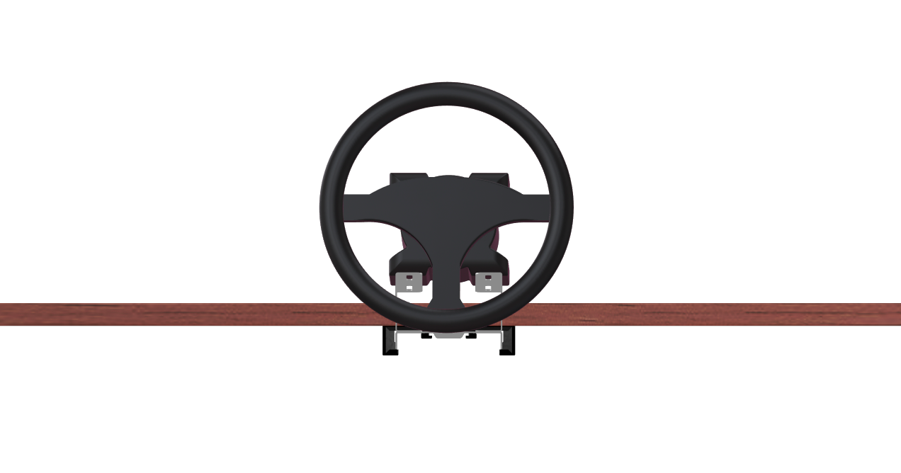 The wheel mount locks into your desk with a click, and releases instantly with a pull of the tab.